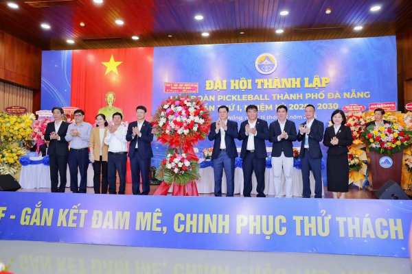 Lãnh đạo TP Đà Nẵng tặng hoa chúc mừng Đại hội thành lập Liên đoàn Pickleball TP Đà Nẵng.
